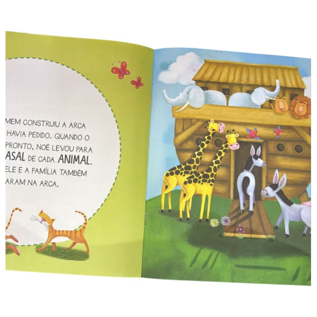 A Arca de Noé | Lê Pra Mim” traz a clássica história bíblica da fé e obediência de Noé de forma alegre e cativante, ideal para crianças pequenas. Com ilustrações atraentes e linguagem acessível, o livro retrata como Noé construiu a arca, reuniu os animais e se preparou para o dilúvio — transmitindo valores como confiança em Deus, perseverança e obediência. Com capa brochura, acabamento em laminação brilhante e miolo em papel offset, o livro tem formato grande (cerca de 28 × 28 cm) — perfeito para leitura compartilhada entre pais e filhos. São 12 páginas coloridas e resistentes, ideal para o público infantil.