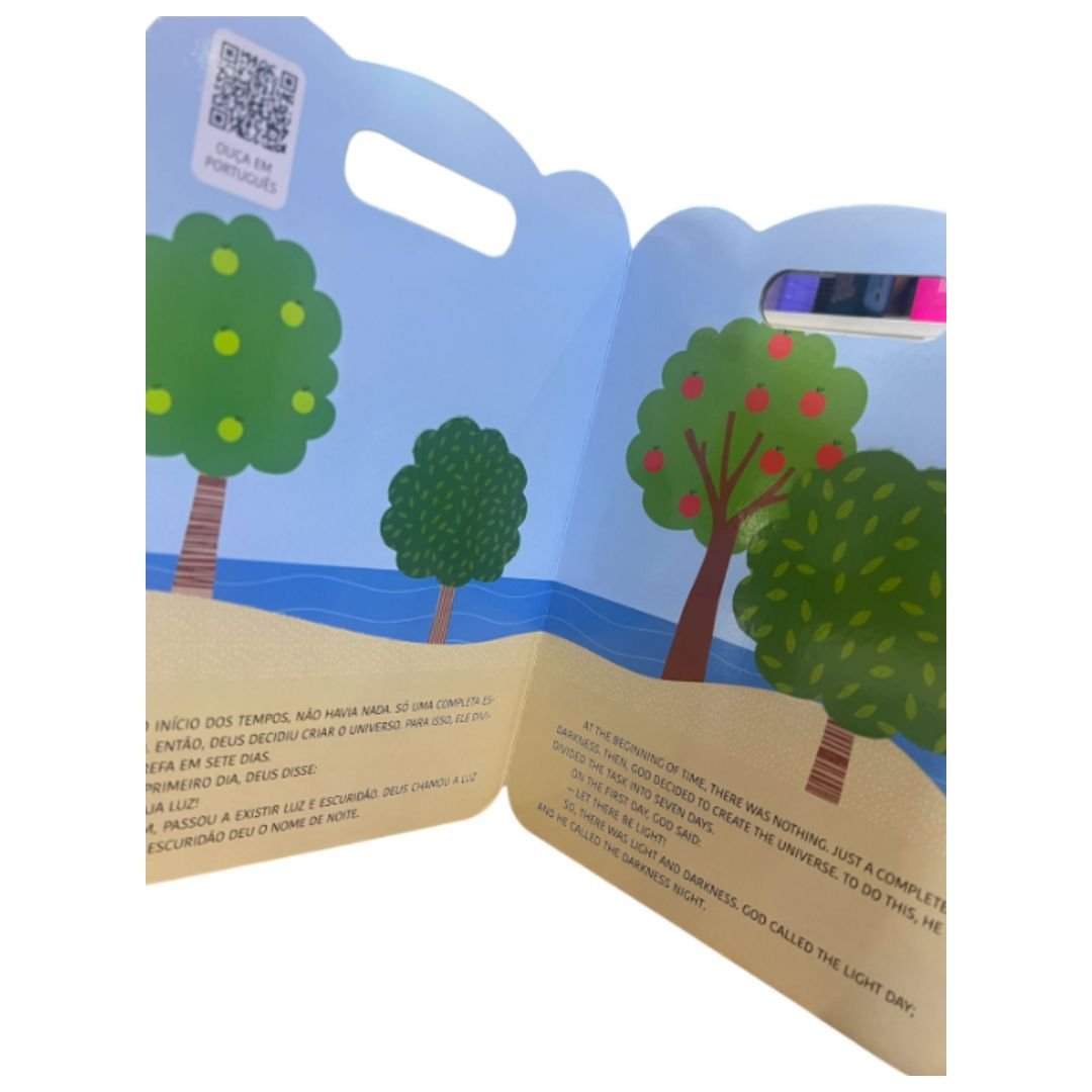 - Conteúdo: História da A Criação com textos em português e inglês