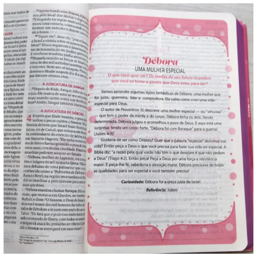 Torne-se uma seguidora de Jesus, aplicando as verdades eternas da Bíblia no seu dia a dia. Esta Bíblia é o guia perfeito para meninas que desejam crescer na fé e no amor por Deus.