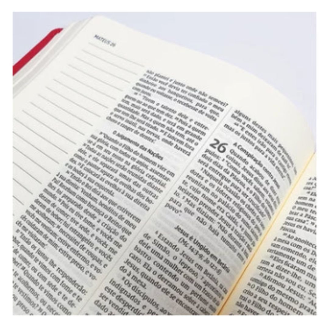Esta Bíblia chegou para resolver esse problema. Pensada para você que gosta de registrar comentários e anotações que enriqueçam a compreensão do texto bíblico, ela inclui espaço para anotações sem prejudicar a leitura das Escrituras. Em edição de luxo, esta Bíblia conta com a Nova Tradução Internacional (NVI), um excelente acabamento e papel diferenciado, que dá mais destaque às suas anotações e mais visibilidade ao texto, graças à fonte especial Leitura Perfeita, desenvolvida exclusivamente pela Thomas Nelson Brasil.