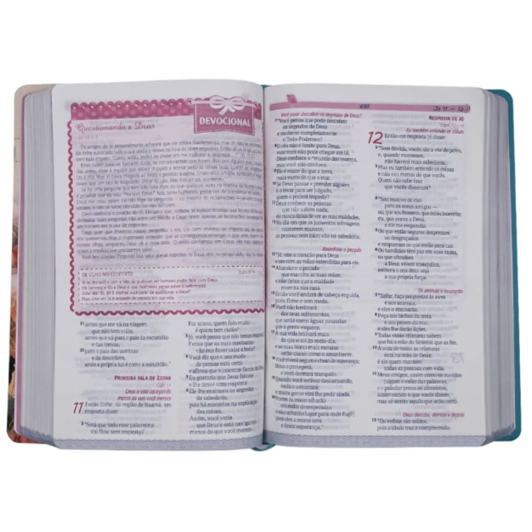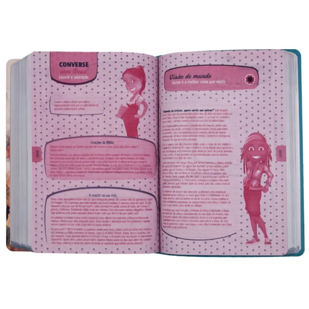 A Bíblia Sagrada Entre Meninas e Deus foi especialmente desenvolvida para ajudar meninas e mulheres a crescerem na fé, no conhecimento da Palavra e no relacionamento pessoal com Deus. Com uma linguagem acessível da versão NTLH (Nova Tradução na Linguagem de Hoje), ela torna a leitura clara, envolvente e transformadora.