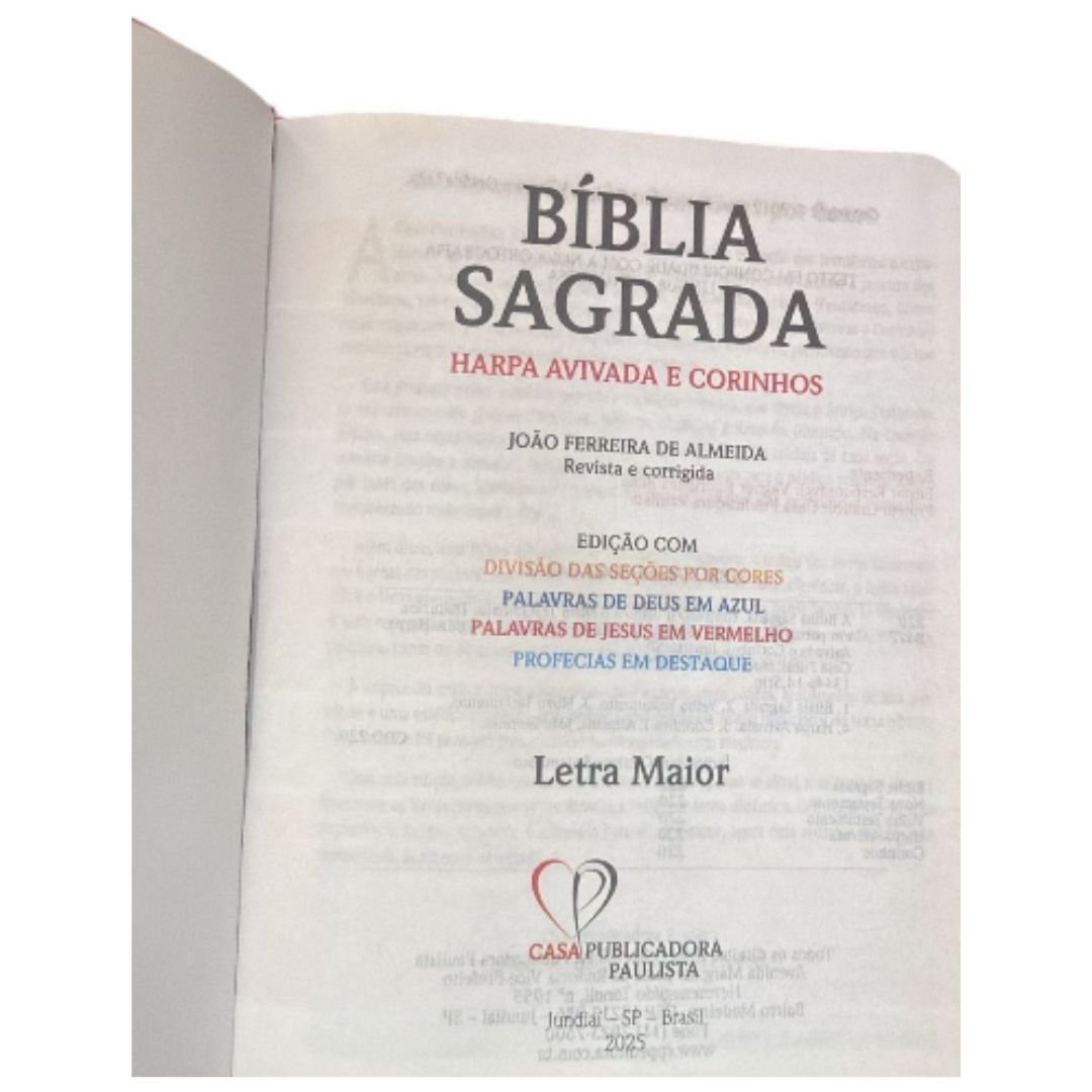 A Bíblia Sagrada – Almeida Revista e Corrigida (ARC) é a versão preferida dos evangélicos no Brasil, conhecida pela sua fidelidade na tradução dos textos originais, realizada pelo missionário português João Ferreira de Almeida. Com uma linguagem clara e acessível, esta edição destaca-se por sua rica tecnologia full color, proporcionando uma leitura mais envolvente e esclarecedora. As promessas estão em destaque, as palavras de Deus aparecem em azul e as palavras de Jesus são impressas em vermelho, facilitando a compreensão e a meditação.