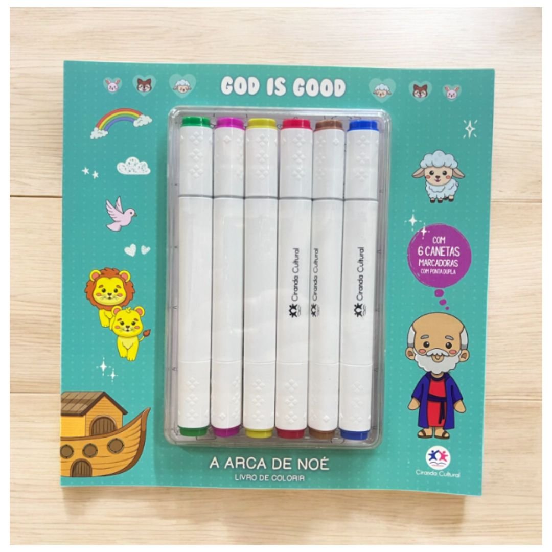 God is Good | A Arca de Noé | Livro de Colorir Com 6 Canetinhas Dupla Ponta